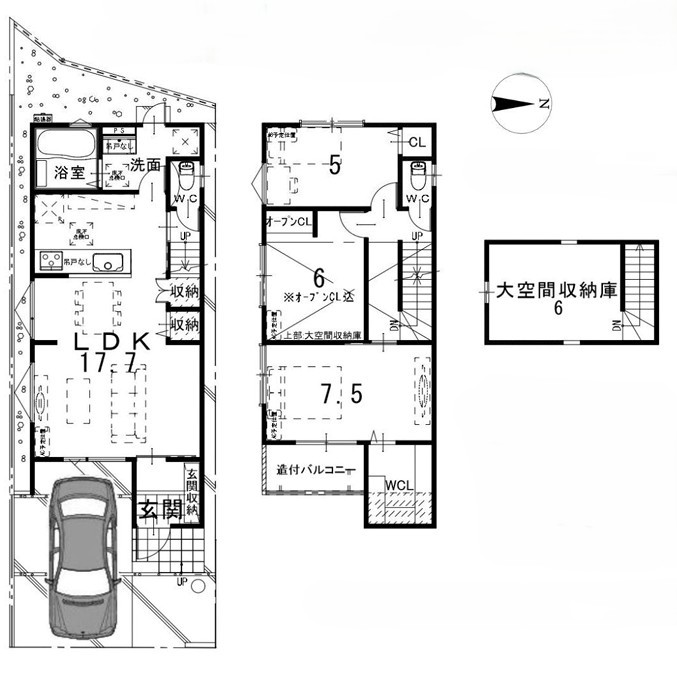 注目: カースペース並列3台駐車可能!天井にデザイン性!縁なし畳ルームあり